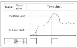 Kössük be a figyelni kívánt analóg bemenetet az Al (V) bemenetre. A lehetséges értékeket a TU (felső határ) és a TL (alsó határ) paraméterekkel állíthatjuk.